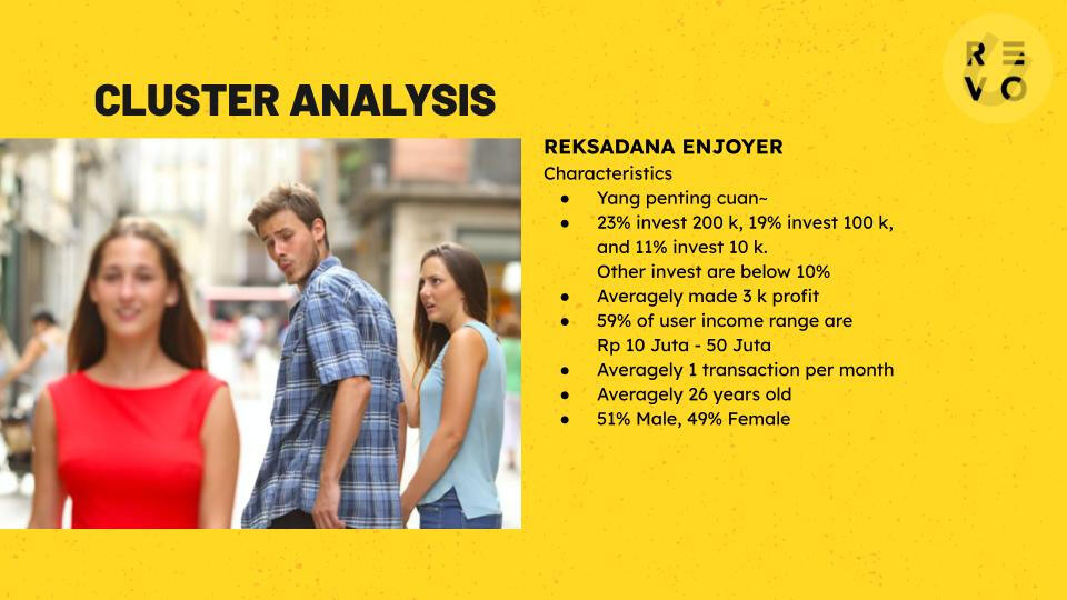 We found that there are 2 clusters on our customer segmentation there are; Reksadana Enjoyer (Low Risk Low Return) & Reksadana Hardcore (High Risk High Return)