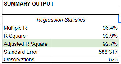R Square is 0,93: There are 93% variation of price can be explained by 4 variables