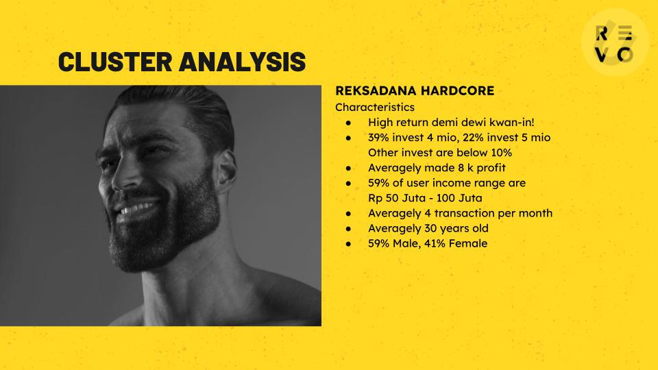 We found that there are 2 clusters on our customer segmentation there are; Reksadana Enjoyer (Low Risk Low Return) & Reksadana Hardcore (High Risk High Return)