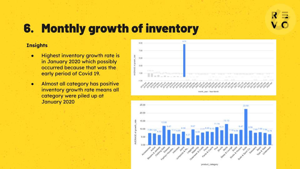 Highest inventory growth rate is in January 2020 which possibly occurred because that was the early period of Covid 19.